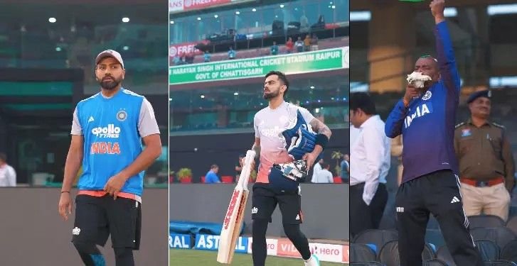 Rohit Sharma , रायपुर। भारत और साउथ अफ्रीका के बीच दूसरे वनडे मुकाबले से ठीक पहले रायपुर शहर में क्रिकेट का रोमांच चरम पर पहुंच गया है। शंखनाद की गूंज के बीच टीम इंडिया के स्टार खिलाड़ी रोहित शर्मा और विराट कोहली जब रायपुर के शहीद वीर नारायण सिंह इंटरनेशनल स्टेडियम में अभ्यास के लिए उतरे, तो उनका वीडियो सोशल मीडिया पर तेजी से वायरल हो गया। फैंस ने दोनों दिग्गज क्रिकेटरों की एक झलक पाने के लिए स्टेडियम के बाहर और अंदर बड़ी संख्या में जमा होकर जोरदार स्वागत किया।