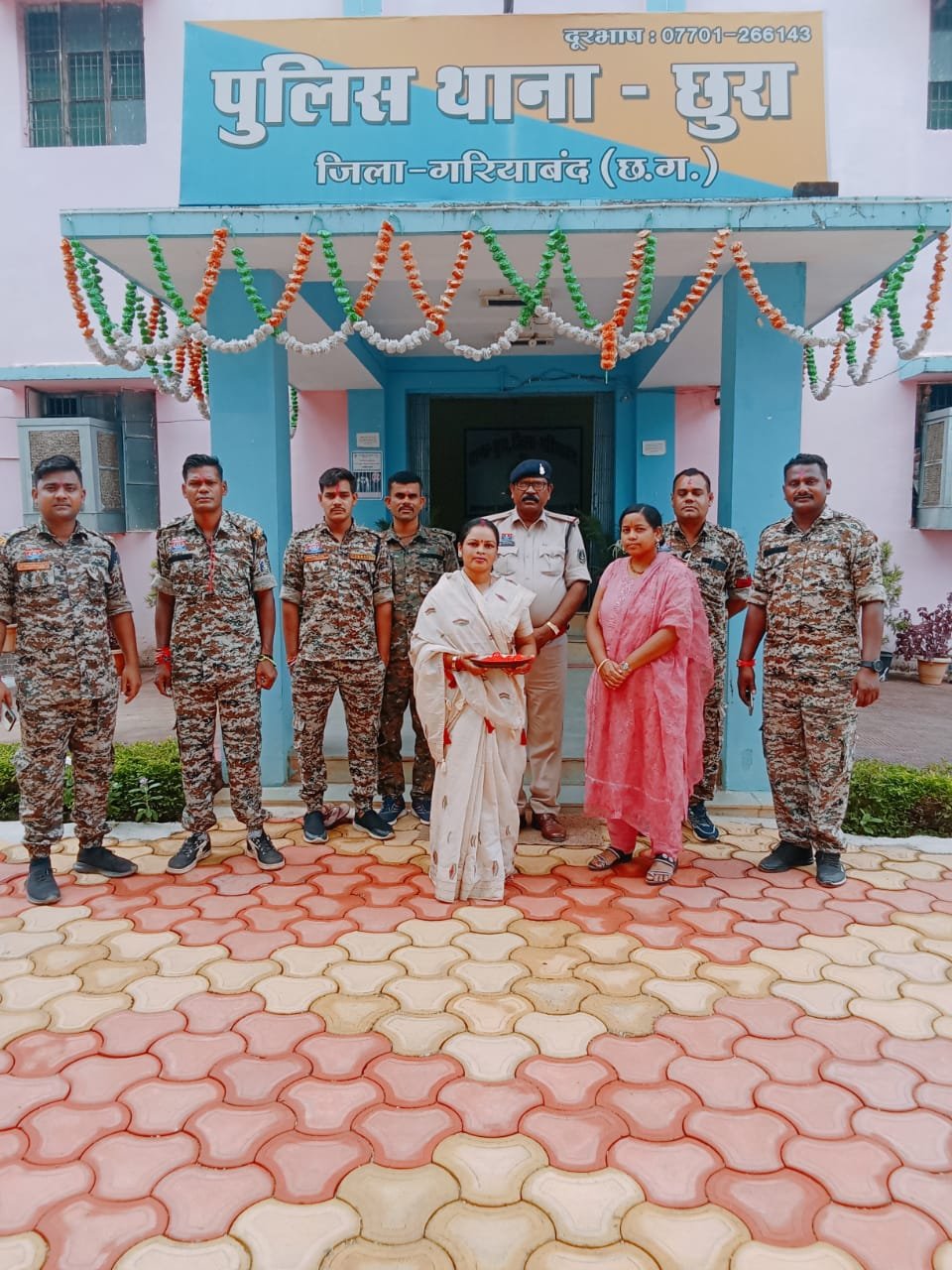 अपने दिन की शुरुआत मंजू ध्रुव ने छुरा पुलिस थाना से की। ड्यूटी पर तैनात जवानों के हाथों में जब उन्होंने राखी बांधी, तो पुलिसकर्मियों के चेहरों पर गर्व और भावुकता दोनों झलकने लगी। उन्होंने जवानों को उनके साहस, निस्वार्थ सेवा और सुरक्षा के लिए धन्यवाद दिया और कहा — “हम चैन की नींद सोते हैं, क्योंकि आप लोग दिन-रात हमारी सुरक्षा में खड़े रहते हैं। आपकी लंबी उम्र और सुख-समृद्धि की कामना करना मेरा सौभाग्य है।”